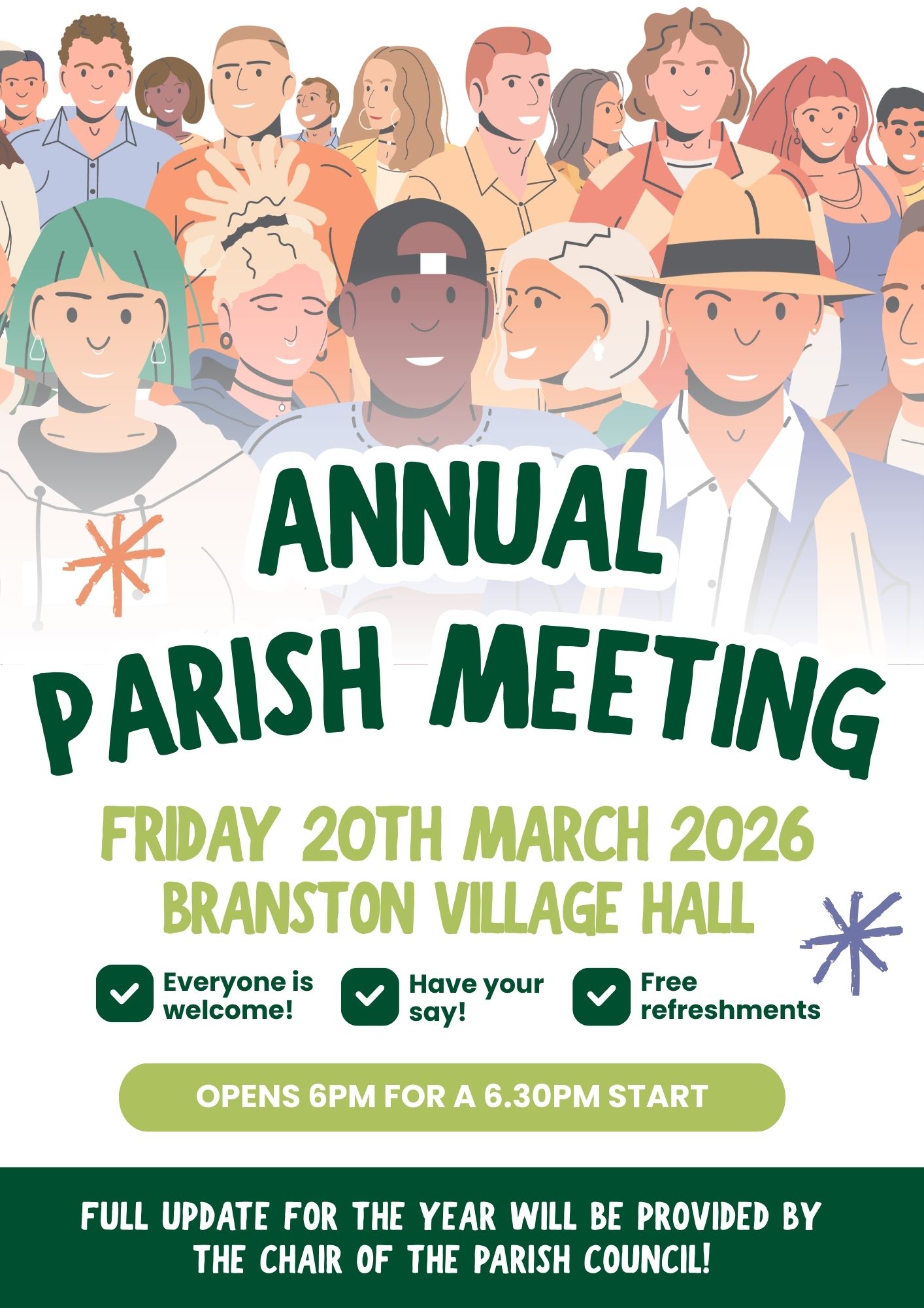 - Register your interest at assistantclerk@branston-pc.gov.uk